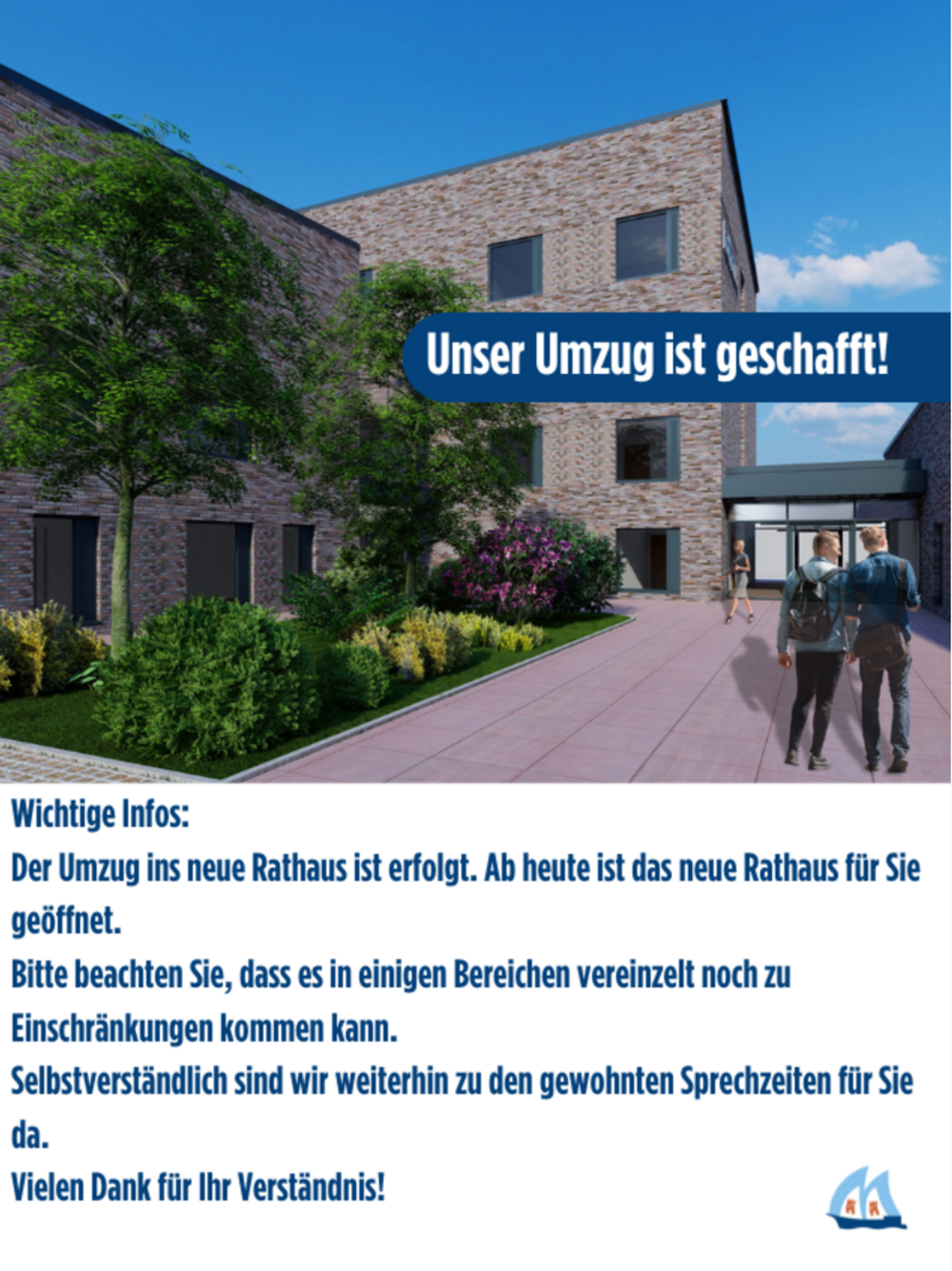 Der Umzug ins neue Rathaus ist erfolgt. Ab heute ist das neue Rathaus für Sie geöffnet.
