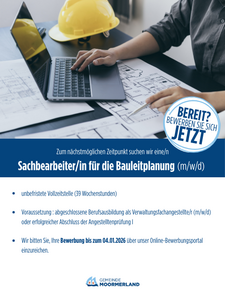 Die Gemeinde Moormerland stellt zum nächstmöglichen Zeitpunkt eine/n