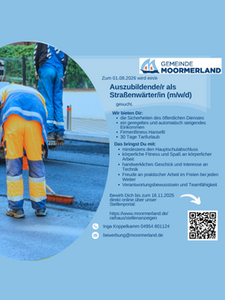 Zum 01. August 2026 stellen wir eine/n Auszubildende/n als Straßenwärter/in (m/w/d) für unseren Bauhof ein.