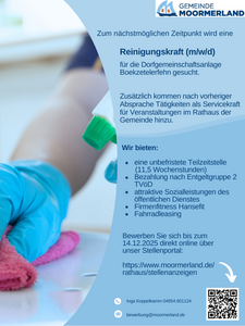 Wir suchen zum nächstmöglichen Zeitpunkt eine Reinigungskraft (m/w/d) als Krankheitsvertretung für die Grundschule Oldersum.