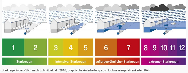 Das Bundesamt für Kartographie und Geodäsie (BKG) hat eine Hinweiskarte Starkregengefahren für ganz Niedersachsen erstellen lassen, mit der in einem ersten Schritt mögliche Gefahrenbereiche zu identifizieren sind.