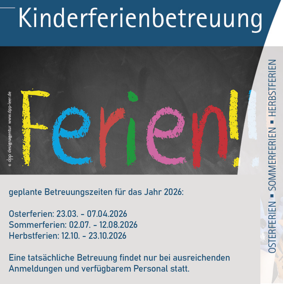 Die Gemeinde Moormerland plant in den Oster-, Sommer- und Herbstferien jeweils eine Ferienbetreuung für Grundschulkinder berufstätiger Eltern. Dieses Angebot soll Eltern bei der Vereinbarkeit von Familie und Beruf unterstützen.