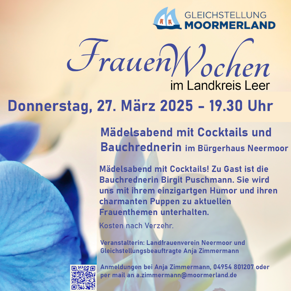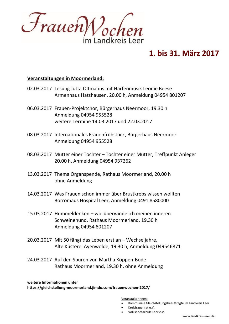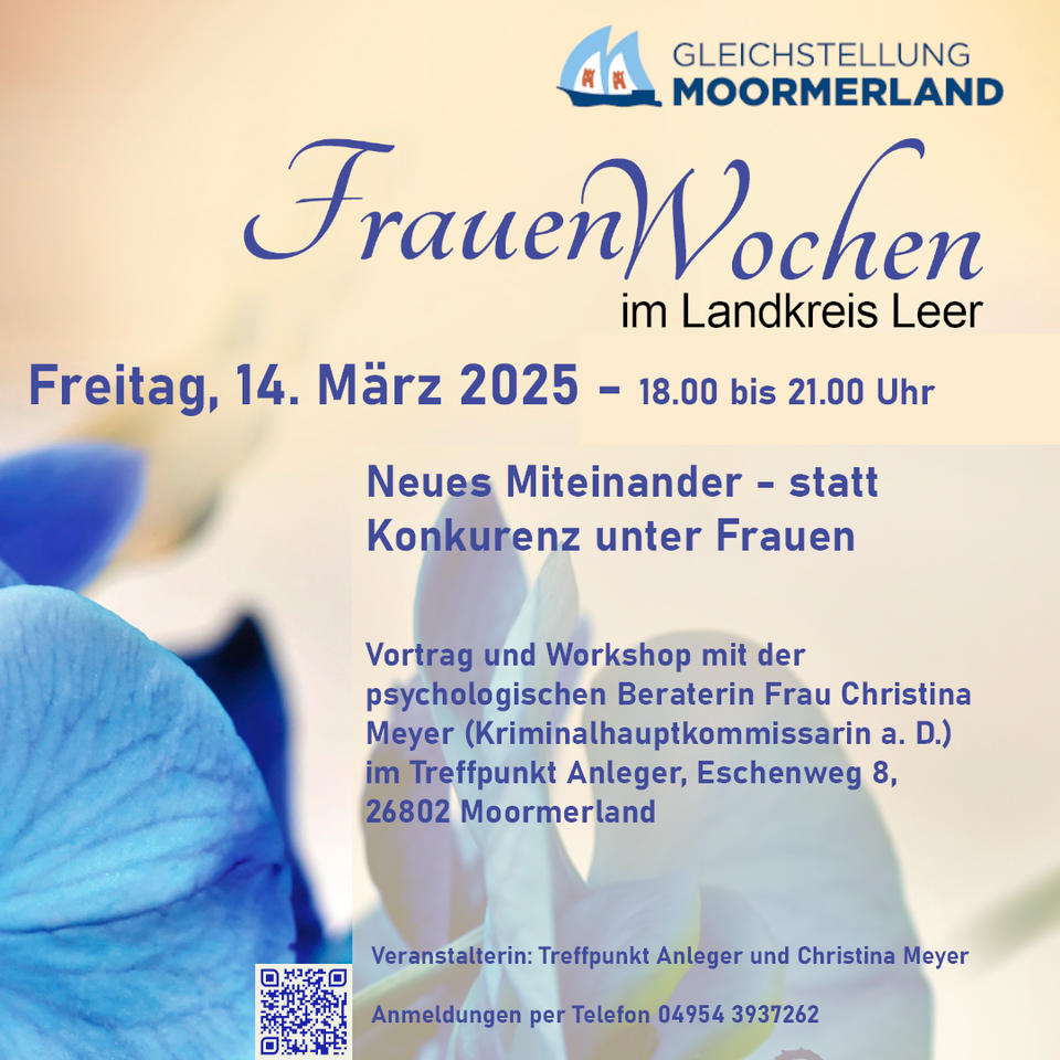 Die kommunalen Gleichstellungsbeauftragten im Landkreis Leer stellen seit 2017 ein vielfältiges Angebot zusammen und freuen sich immer wieder auf viele spannende Begegnungen und auf eine bunte, lebendige Zeit voller Ideen und Impulse!