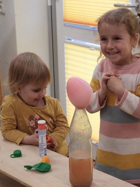 Unser Kindergarten ist Mitglied im bundesweiten Netzwerk „Haus der kleinen Forscher“. Bei unseren Experimenten gehen die Kinder unter anderem naturwissenschaftlichen Phänomenen spielerisch auf den Grund.