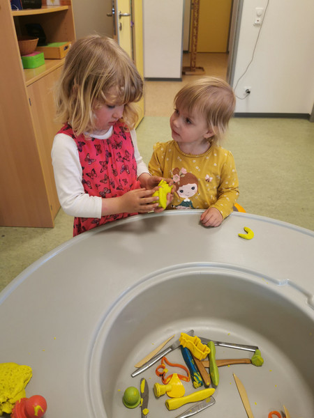 - für das kreative Ausleben der Kinder bietet dieser Raum z.B. einen Maltisch und einen Basteltisch mit unterschiedlichen Materialien