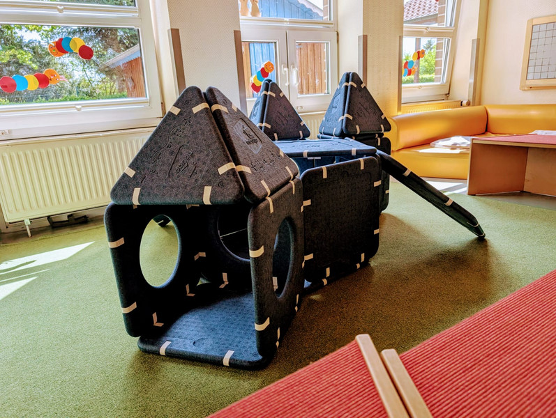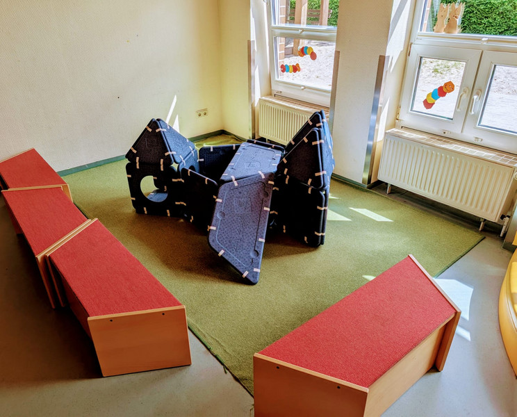 Dieser Raum wird als Bau- und Konstruktionsraum genutzt. Unterschiedliche Materialien, die regelmäßig ausgetauscht werden, geben den Kindern die Möglichkeit nach ihren Vorstellungen zu bauen und sich auszuprobieren.