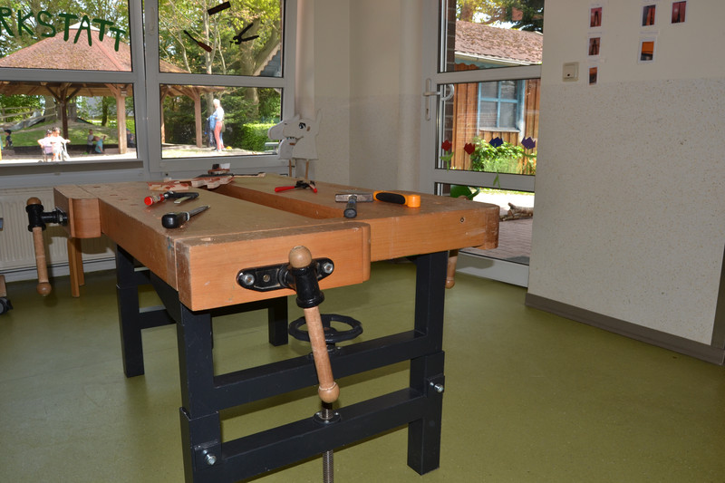 Unser Werkraum ist ein beliebter Treffpunkt für kleine Handwerker und Künstler. Hier können die Kinder sich kreativ entfalten und mit verschiedenen Materialien wie Holz, Farbe und Metall arbeiten. Unter fachkundiger Anleitung entstehen großartige, selbstgemachte Werke – vom kleinen Kunstprojekt bis zum praktischen Spielzeug. In der Technik-Ecke untersuchen wir gemeinsam die unterschiedlichen Mechanismen und ihre Funktionen, wie z.B. ein Kettenantrieb- Fortbewegung beim Fahrrad. Darüber hinaus reparieren und bauen wir verschiedene Alltagsdinge unter Berücksichtigung der Mechanismen. Die Kinder lernen die unterschiedlichsten Tierarten, Pflanzen und Naturphänomene kennen und erfahren den richtigen Umgang mit ihnen. So begleiten die Kinder zum Beispiel die Entwicklung von der Raupe zum Schmetterling oder pflanzen Samen und ernten Tomaten.
