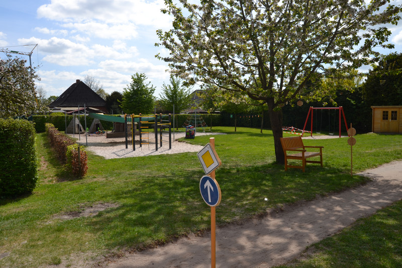 Unser großzügiges Außengelände, aufgeteilt in Schatten und Sonne, kommt bei allen Kindern gut an und verfügt über viele Spielmöglichkeiten mit Fahrzeugen, Matsch- und Wasssermöglichkeiten. Mit Schaukeln, Klettergerüsten, einem Sandkasten und weiteren Flächen bietet er viel Platz zum Austoben, Spielen und Erkunden, er besteht aus zwei Spielbereichen die miteinander verbunden sind. Der Außenbereich lädt zu jeder Jahreszeit dazu ein, die Natur zu erleben und fördert so die motorische und soziale Entwicklung der Kinder. Wir bieten den Kindern jeden Tag an nach draußen zu gehen.
