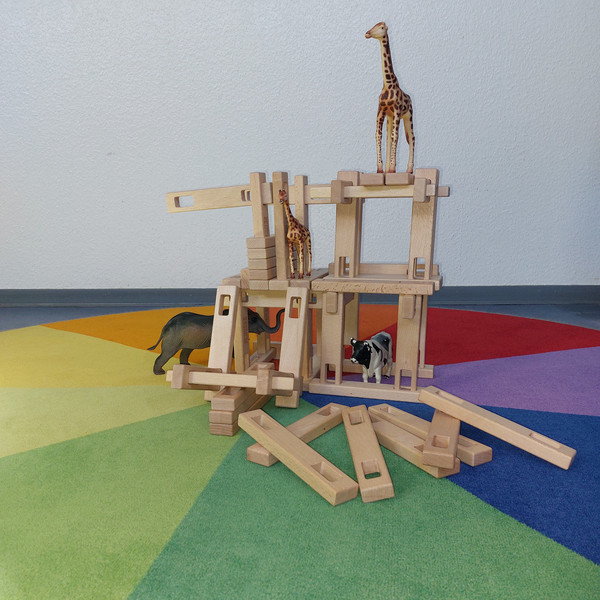 Das Spielmaterial bietet den Kindern die Möglichkeit, die Eigenschaften unterschiedlicher Baumaterialien zu erforschen und ist so gewählt, dass es vielfältige und individuelle Lösungen zulässt und herausfordert, eigene Ideen kreativ umzusetzen.