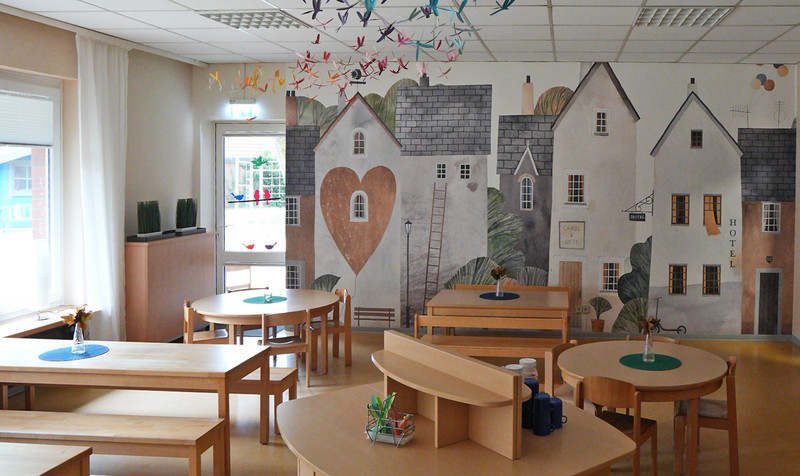 • ausgestattet mit Leseecken, die zum zurückziehen und ruhige Entspannungspausen zur Verfügung stehen