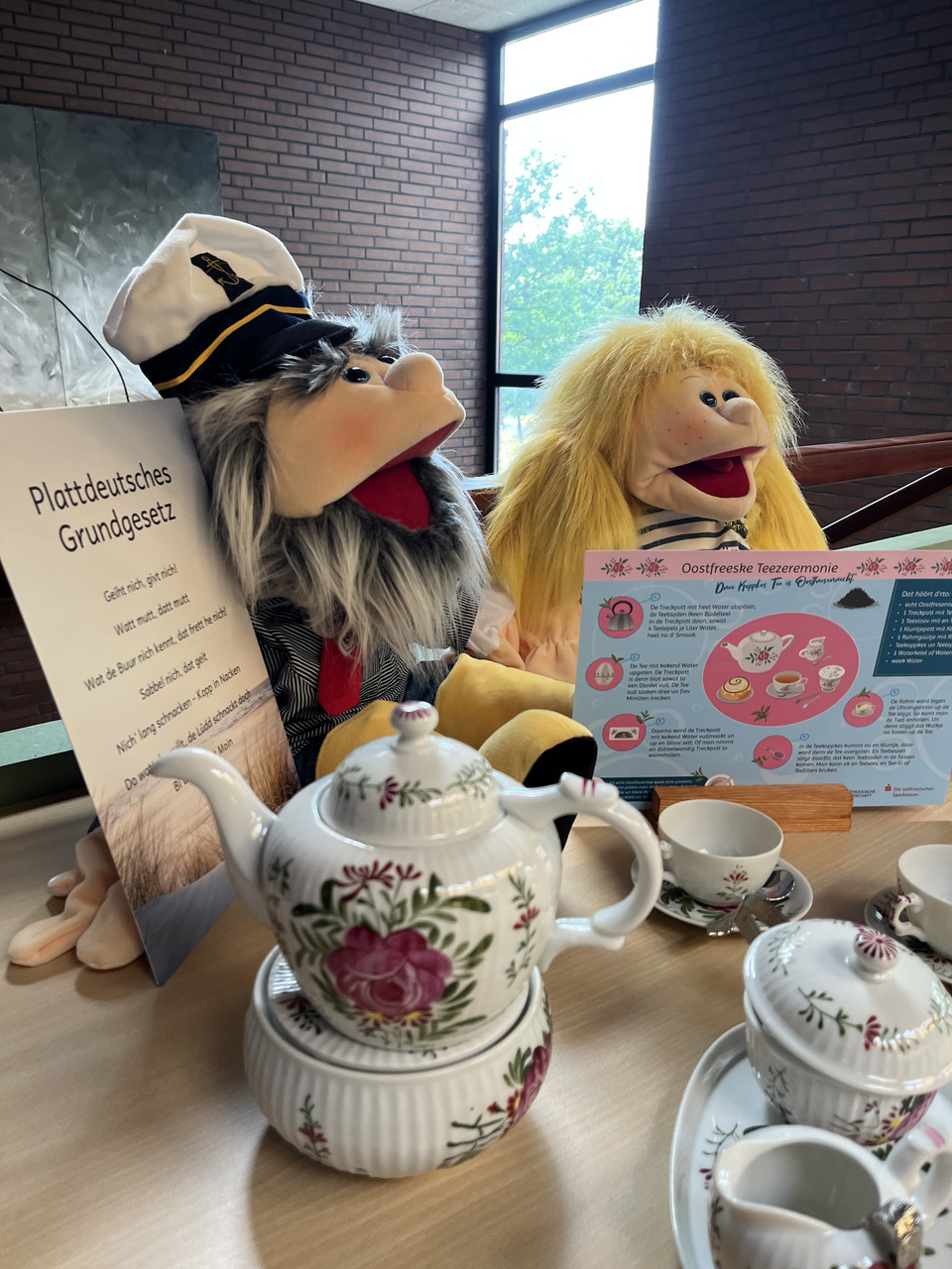 Trientje und Tönjes - die Handpuppen unterstützen das Plattdüütskbüro.