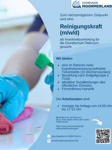 Wir suchen zum nächstmöglichen Zeitpunkt eine Reinigungskraft (m/w/d) als Krankheitsvertretung für die Grundschule Oldersum.