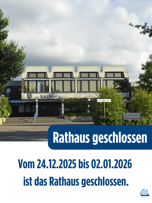Unser Rathaus wird in diesem Jahr rund um die Feiertage zum Jahreswechsel (vom 24.12.2025 bis einschließlich 02.01.2026) geschlossen bleiben.