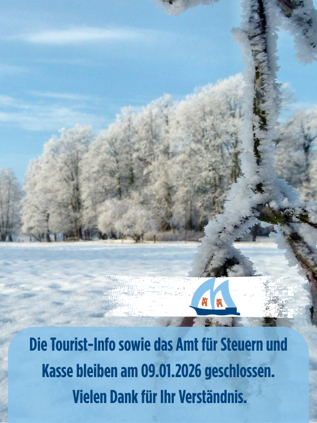 Die Tourist-Info sowie das Amt für Steuern und Kasse bleiben am Freitag, den 09.01.2026, aus personellen Gründen geschlossen. Vielen Dank für Ihr Verständnis – ab Montag sind wir wieder wie gewohnt für Sie da.