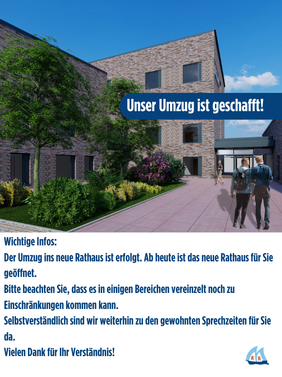 Der Umzug ins neue Rathaus ist erfolgt. Ab heute ist das neue Rathaus für Sie geöffnet.